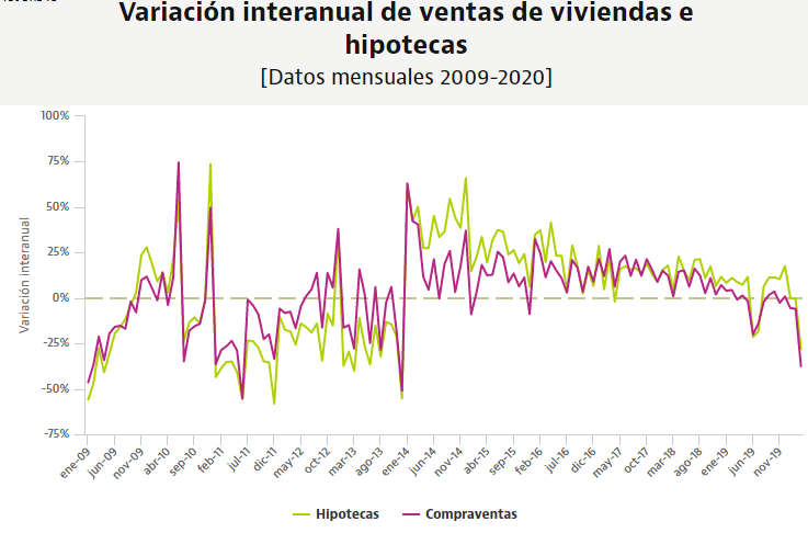 Coincidiendo con el inicio del confinamiento y el decreto del estado de alarma, la venta de casas se desplomó un 37,5% interanual en el tercer mes del año, mientras que la formalización de préstamos hipotecarios descendió un 28%. También se produjeron caídas del precio medio de las viviendas vendidas, que se mantiene por debajo de los 1.400 euros/m2 tras bajar un 2,2% …(seguir leyendo).