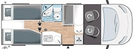 | La perfilada con garaje, compacta como una furgonetaTan compacta y manejable como una furgoneta, la perfilada S194 ofrece más espacio interior y un mejor aislamiento. Cuenta con numerosos espacios de almacenamiento, un cuarto de aseo modulable y una cama plegable que permite tanto acceder a los espacios de almacenamiento como ampliar el garaje. |