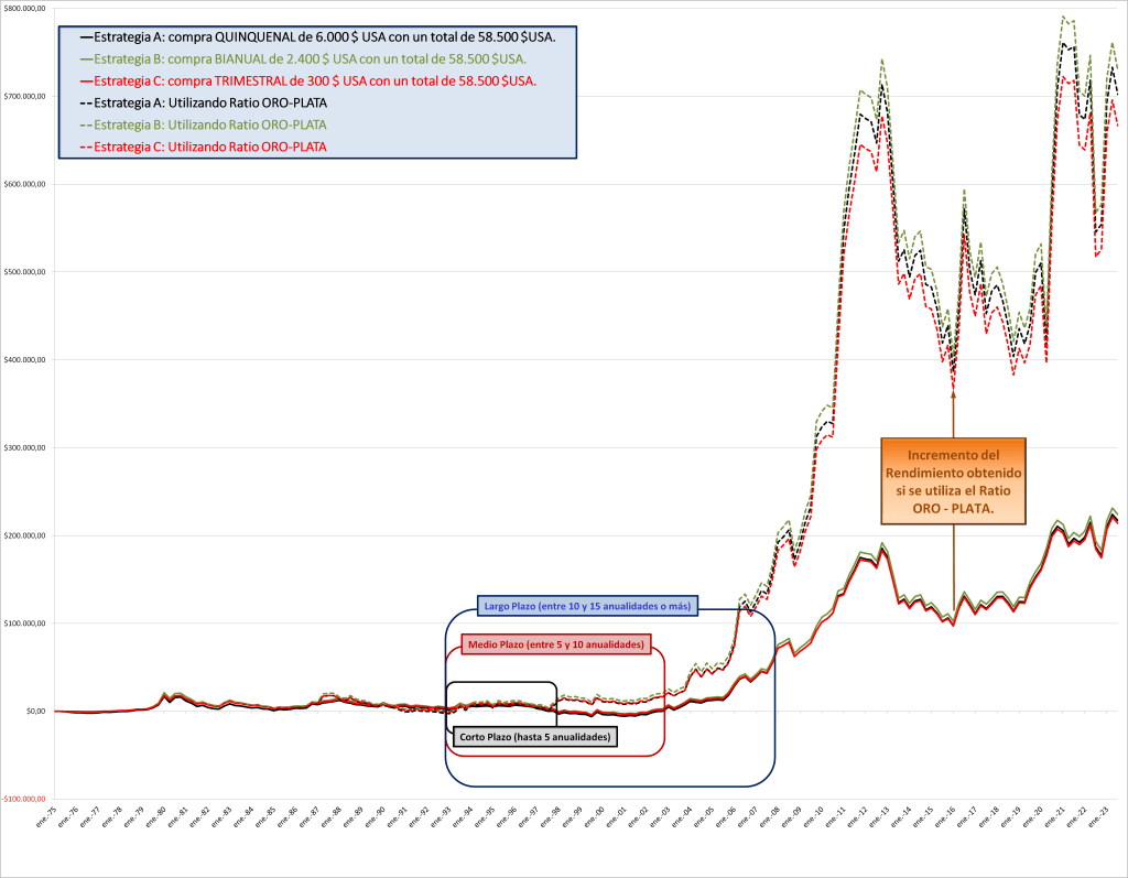 - Estrategia C: utilizando Ratio ORO-PLATA.