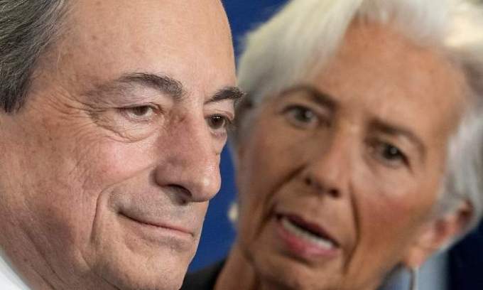 Mario Draghi junto a su sucesora Christine Lagarde. Reuters