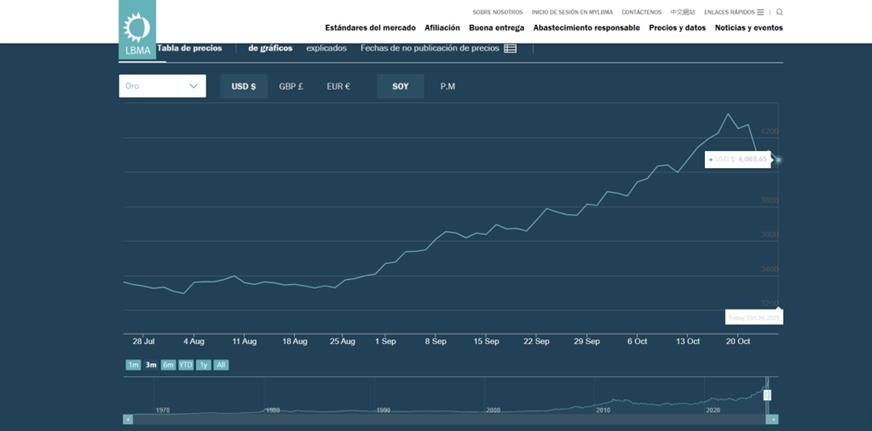 <<Durante siglos fue símbolo de poder y de riqueza, pero desde que en 1971 Estados Unidos puso fin al patrón oro había perdido parte de su protagonismo ante el auge del sistema financiero moderno y las inversiones digitales. Ahora vuelve a acaparar la atención de los mercados. El oro se ha convertido en uno de los activos del año y refulge con fuerza. En lo que va de 2025, su precio ha subido casi un 50% —aunque en algún momento ha rozado el 60% de incremento— y más de un inversor ha engrosado su billetera gracias a este precioso metal. A principios del pasado mes de enero, una onza cotizaba a 2.943 dólares (2.540 euros) y en octubre ha llegado a hacerlo en 4.381 dólares (3.781 euros), su máximo histórico>>.Jorge Otero, Periodista. Licenciado en Sociología.